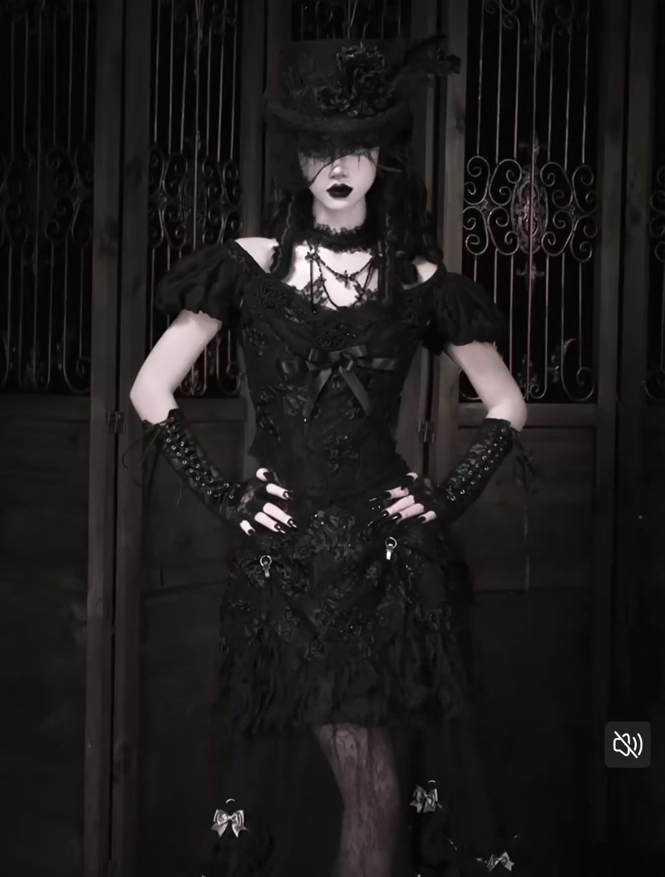 デコルテを縁取るレースと装飾は、古い肖像画の中の令嬢を思わせ、近づくほどに気品と危うさが交差する。